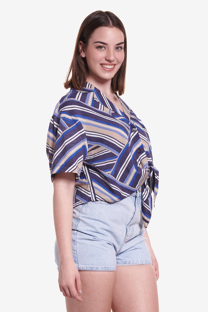 La camisa jarana es talla única. Es una camisa de corte recto y oversized anudada a la cintura.