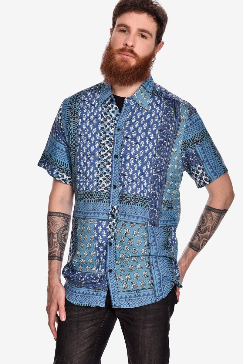 La Camisa Rock Pachwork Azul es de manga corta y corte recto. Tejido fluido, de tacto suave y fácil planchado.