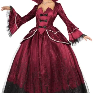 ¿Estás buscando un disfraz de vampira para tu fiesta de Halloween? Con el disfraz de vampiresa para mujer en color rojo y negro tendrás el vestido perfecto para disfrazarte como una elegante y estilosa vampiresa con traje de época y triunfarás en tu fiesta de Halloween.