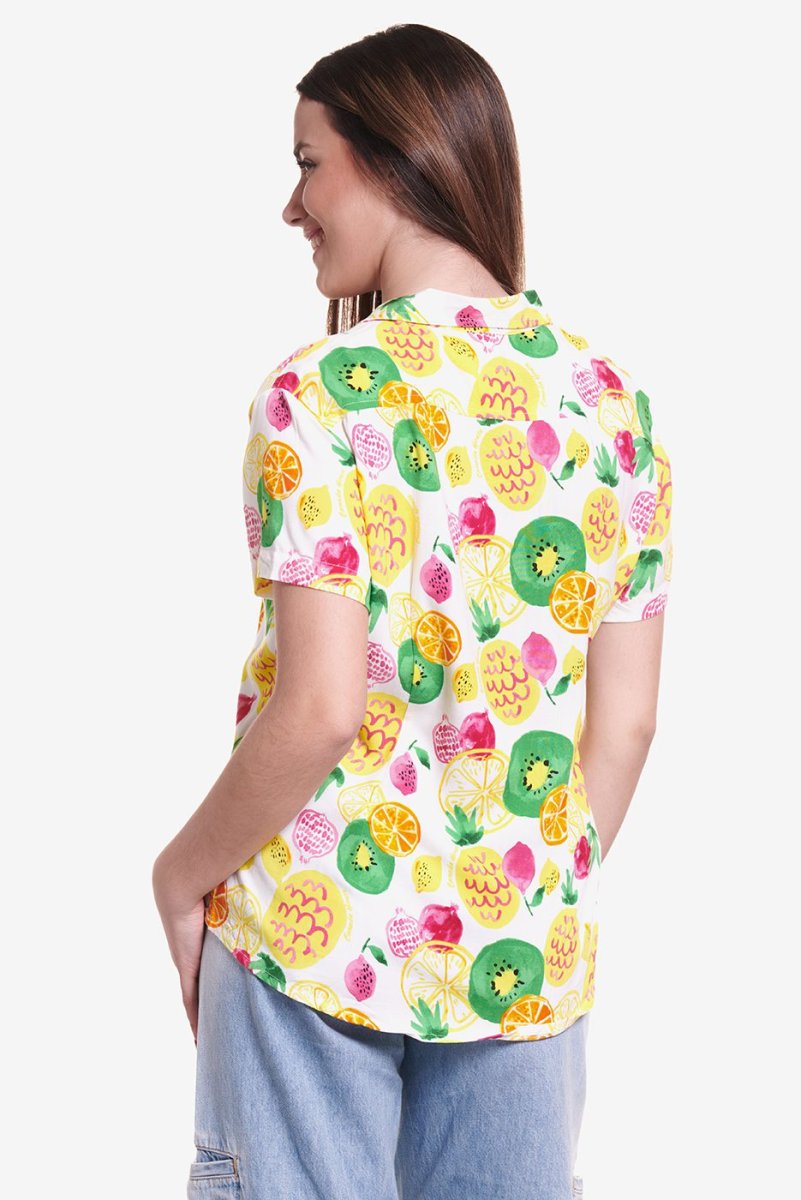 Camisa de frutas originales para mujer de manga corta y con un colorido estampado que le aportan un aire veraniego.