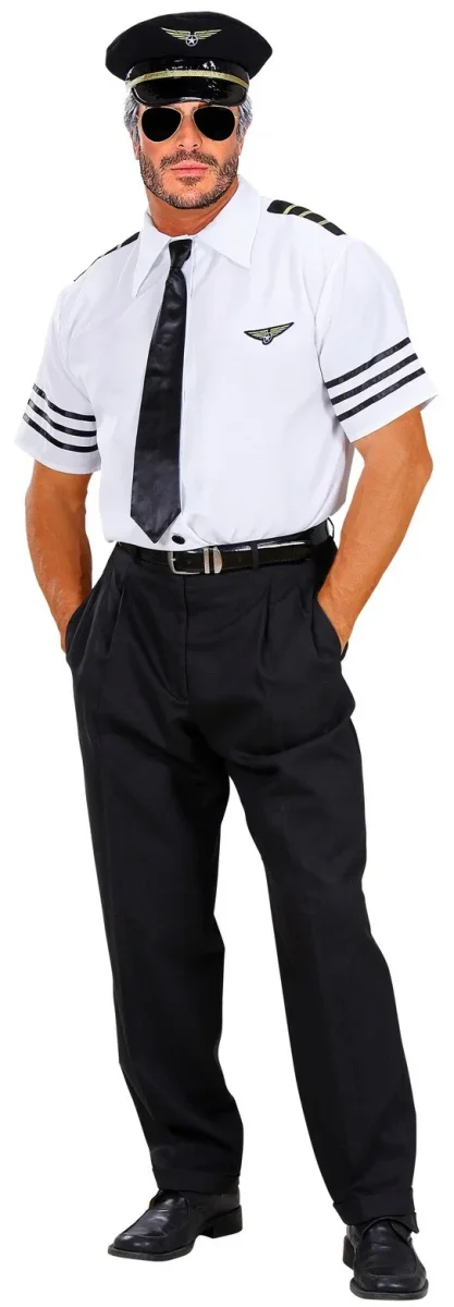 ¿Quieres convertirte en un auténtico piloto de aviación? Con este conjunto de disfraz para hombre tendrás todo lo necesario para hacerte pasar por uno de ellos.