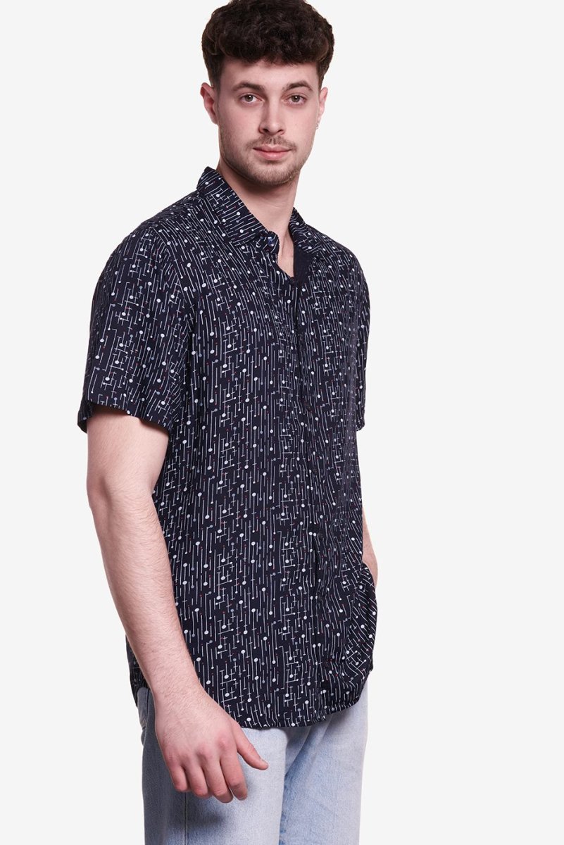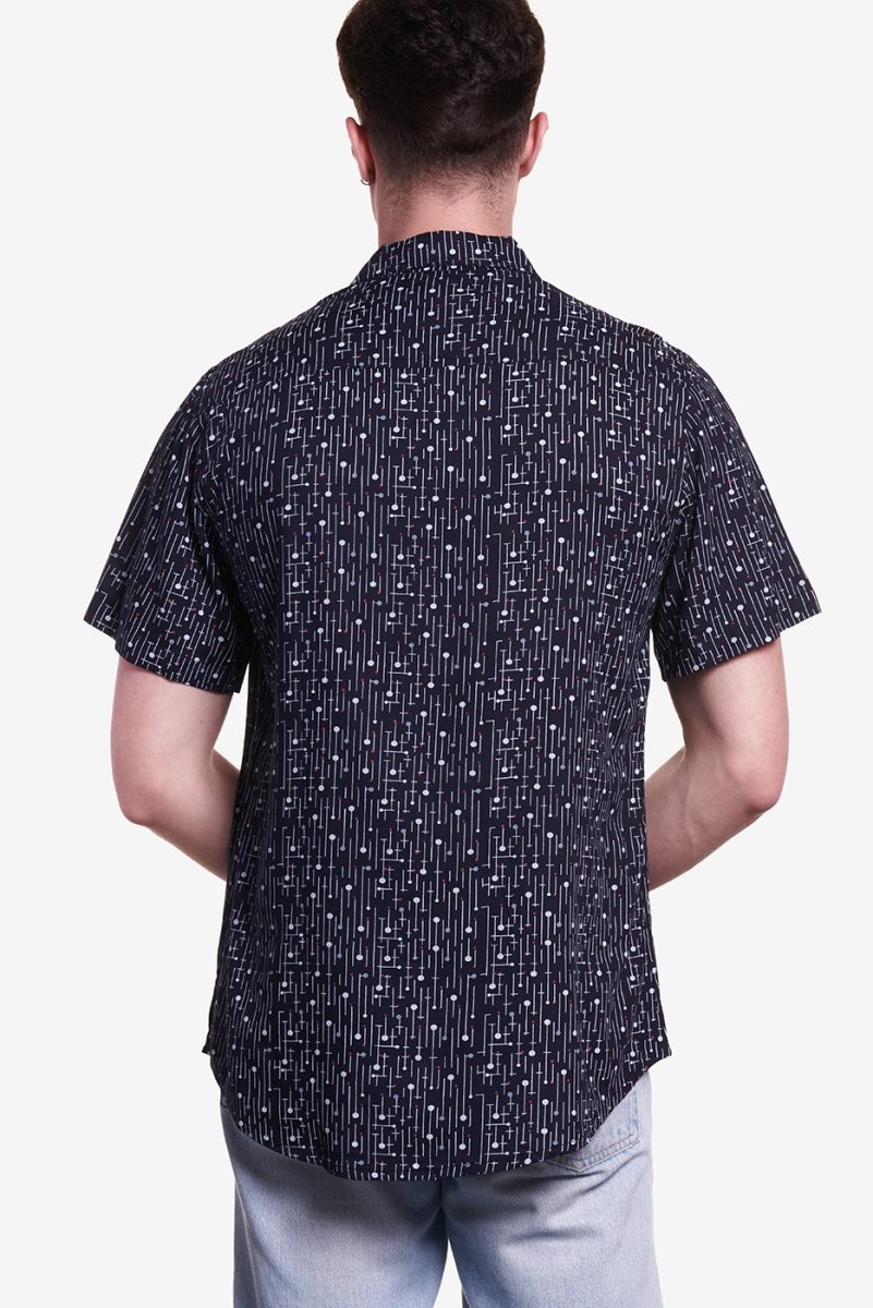 La Camisa Rock con estampado de termómetros es de manga corta, corte recto y con cierre abotonado en su parte delantera.
