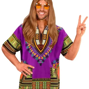 Camiseta Hippie Morada Estilo Dashiki para Hombre
